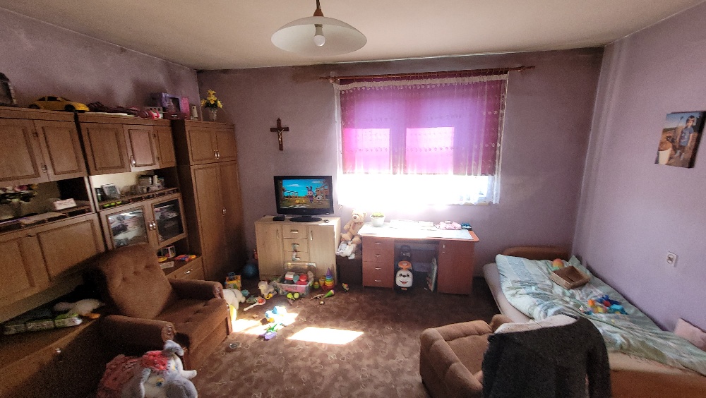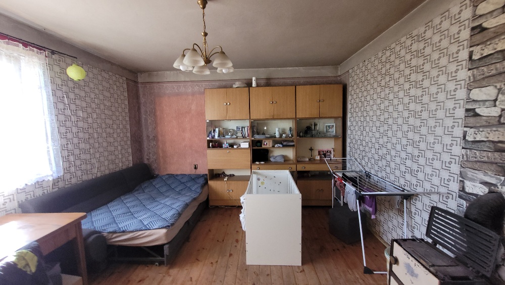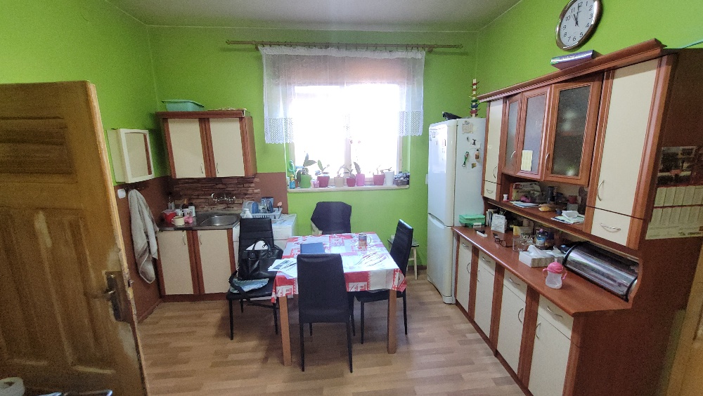 Budynek mieszkalny: dwukondygnacyjny – parter i poddasze gospodarcze, częściowo podpiwniczony, w zabudowie wolnostojącej, wybudowany w roku 1962 w technologii tradycyjnej murowanej o powierzchni użytkowej 85,04 m2. Budynek składa się z następujących pomieszczeń: wiatrołap, korytarz, 3 pokoje, spiżarnia, kuchnia. Instalacje techniczne w budynku: elektryczna, kanalizacyjna – zbiornik bezodpływowy na ścieki, wodociągowa, ogrzewanie – piece kaflowe na opał stały + koza, c.w. brak, brak pomieszczenia wc i łazienki.
