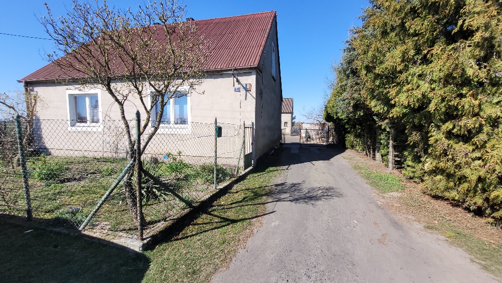 Działka nr 132/3 o kształcie regularnym na mapie i płaskim terenie, nieogrodzona, zagospodarowana, zlokalizowana w części peryferyjnej wsi przy ulicy Polnej posiadającej nieutwardzoną nawierzchnię. Uzbrojenie techniczne terenu: prąd, woda, gaz i światłowód. Nieruchomość zabudowana budynkiem mieszkalnym jednorodzinnym oraz budynkiem gospodarczym.